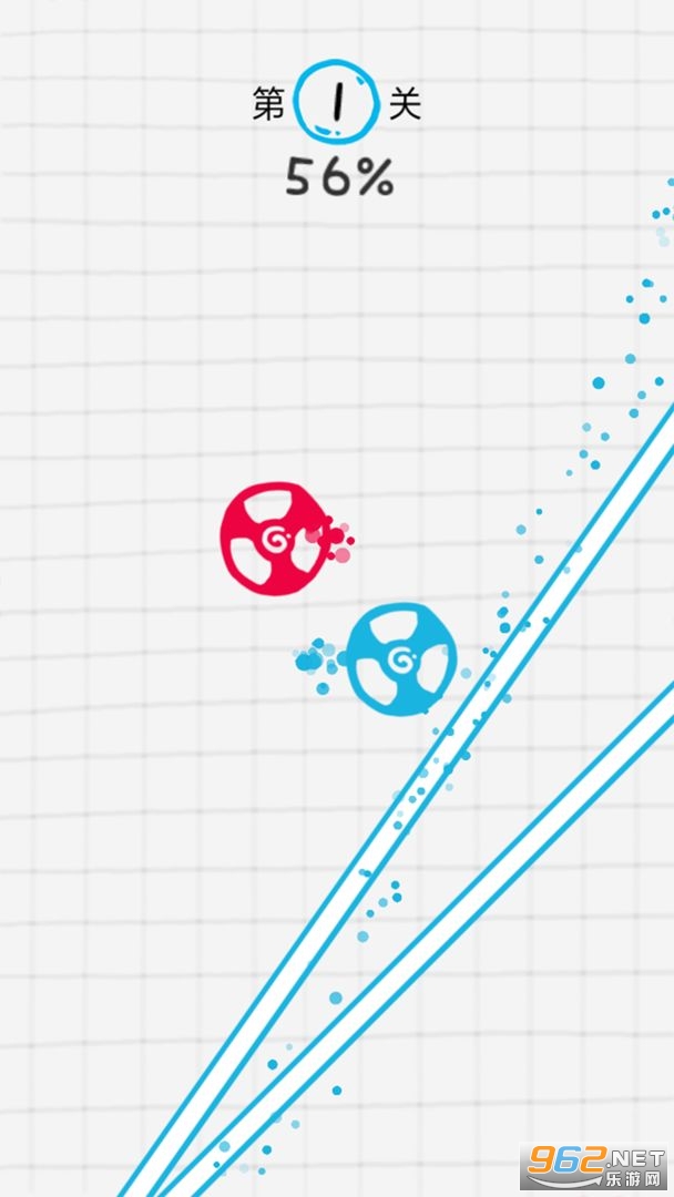 旋转球球是一款休闲的旋转游戏。游戏画风简约,红蓝两色为主调,配合俏皮有趣的背景音乐,玩家只需要控制红色和蓝色小球在斜杆上进行跳跃,不能掉落,努力保持平衡才能通关。游戏内置关卡繁多,游戏的自由度很高。