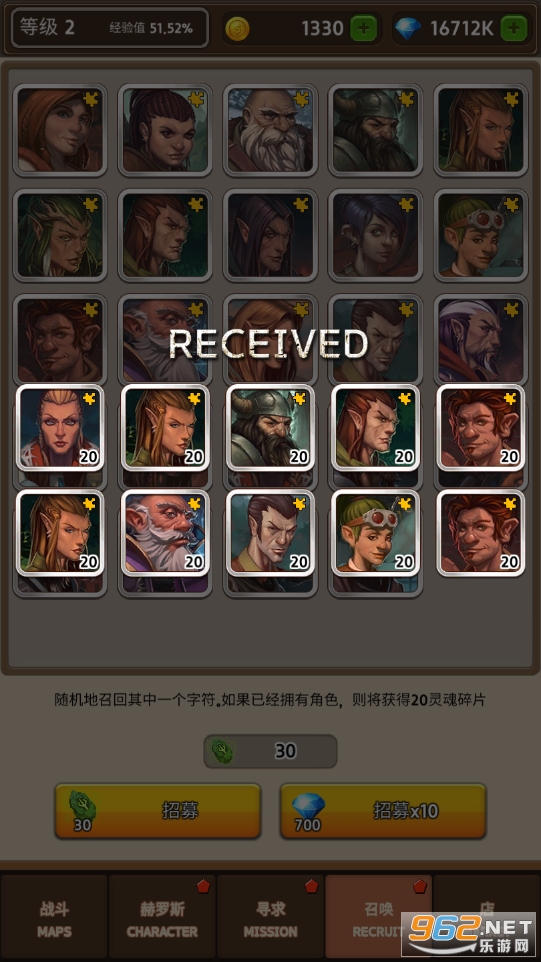 1、英雄来自不同的种族,数量也时很多的,玩家随机招募英雄来组建队伍,进行挑战和冒险。