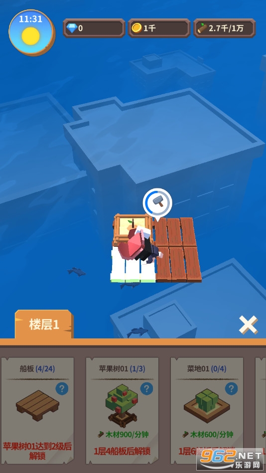 像素风海上生存游戏,玩家开始只有三块木板,可以通过消耗木材来建造自己的船只,可以在船上种上苹果树等,解决食物的来源问题等,可以招募其他的成员来扩充自己的船队,喜欢的朋友可以下载试试。