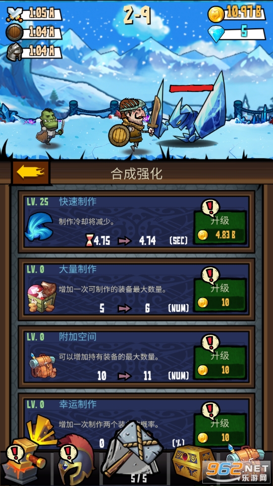 游戏玩法非常简单,只需要点点,记得合成最终武器需要扩展背包