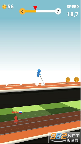 总体来说是一款玩起来很不错的趣味休闲闯关游戏,操作的方式还是很简单的,手指点击屏幕让你的角色撑杆跳来躲避路上的障碍,随着游戏的进行难度也会慢慢的提高给到玩家们很不错的挑战趣味性哦,喜欢的亲们赶紧下载吧。
