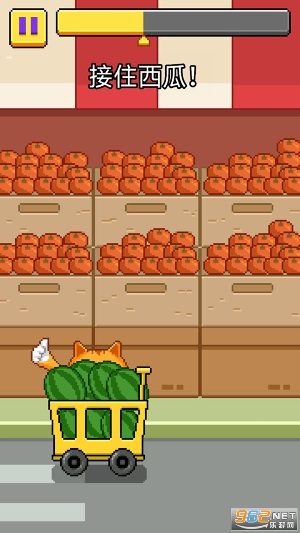 1、控制可爱的小猫咪愉快的各种运输西瓜吧,相信这会是一个很好的游戏体验。