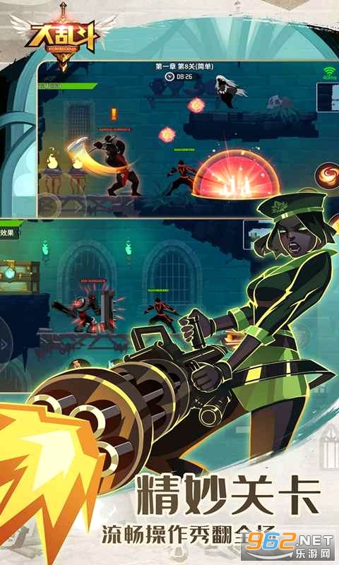1、一个人玩也可以英雄组队,可任意搭配两名角色闯关,用不同的玩法疯狂屠杀小怪;