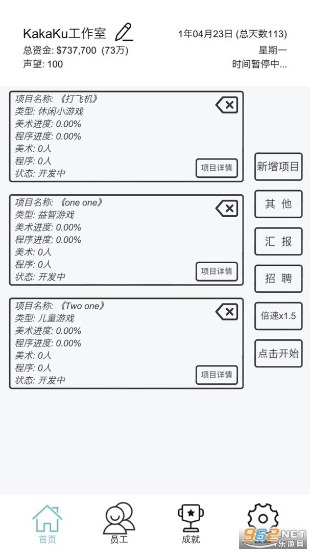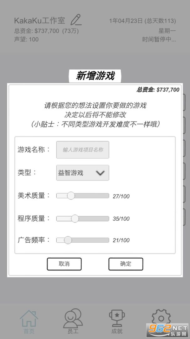 在本游戏中,玩家将扮演一名独立游戏开发者:通过做游戏,然后在游戏内部置入广告赚钱养活自己(包括自己建立的工作室)!!!那么你该如何取舍呢?你会选择“用爱发电”吗?