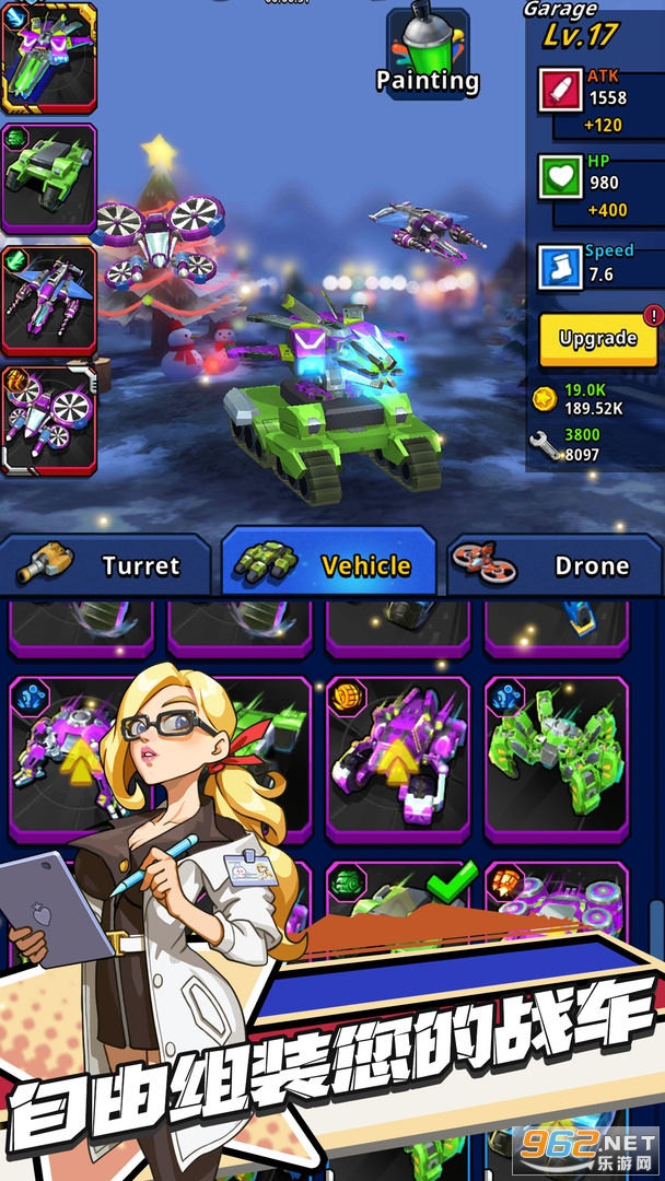2、坦克可自由组合,还支持自定义涂装,装备支持合成强化