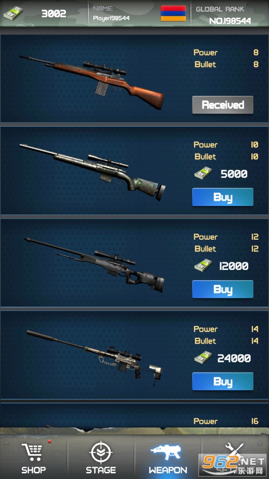 3、游戏内的狙击武器种类很多,需要你击杀海盗完成任务后,用任务奖励的金币来购买。