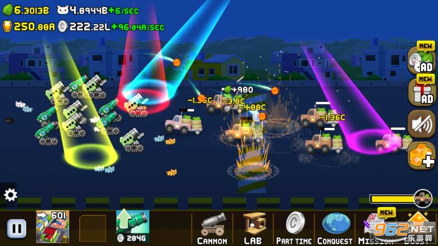 1、各种不同的大炮威力也是不同的,创建属于自己的大炮去征服所有敌人;