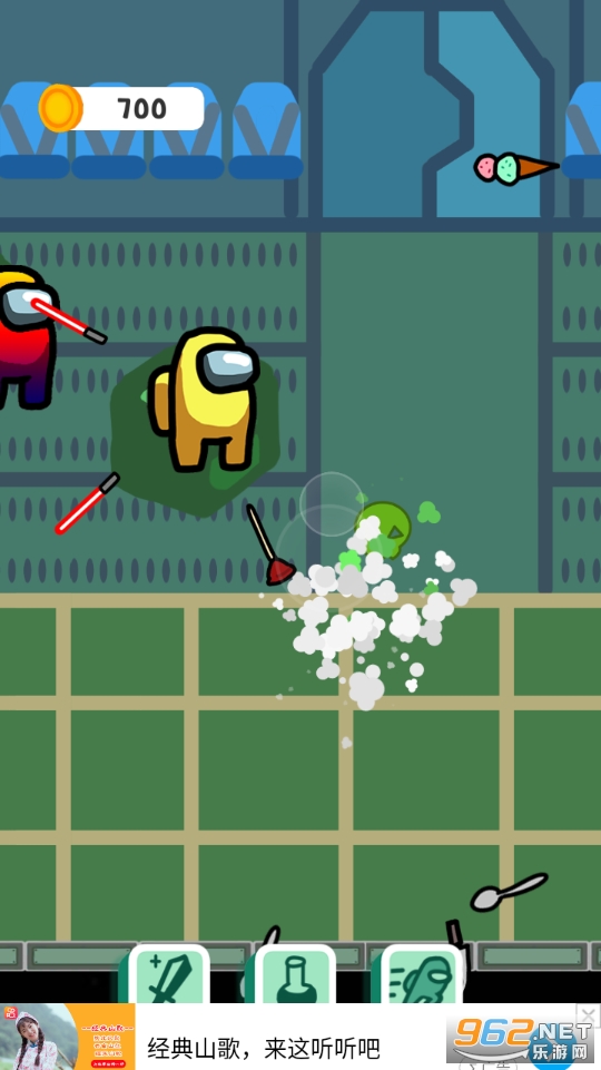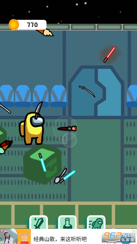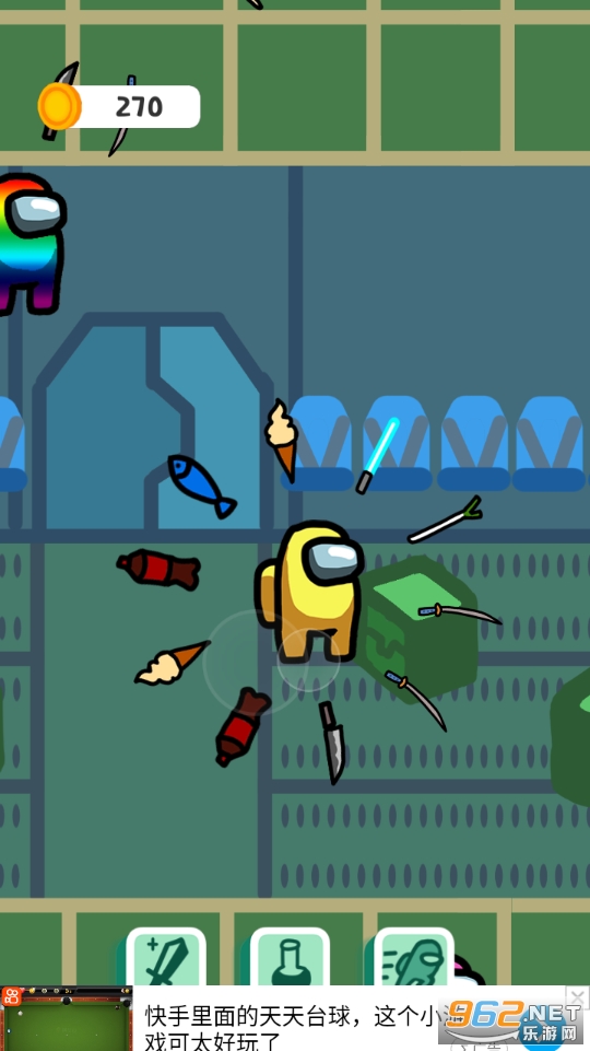 以among us衍生的一款趣味小游戏,玩起来还挺有意思的,你需要控制好角色不断的收集各种小武器,比较考验我俺家的走位小技巧哦!