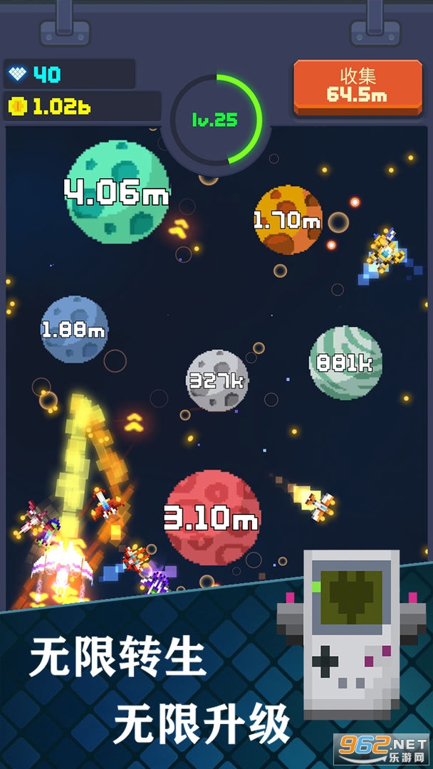攻击一些星球,攻击星球的时候可以获得金币,来升级自己的装备