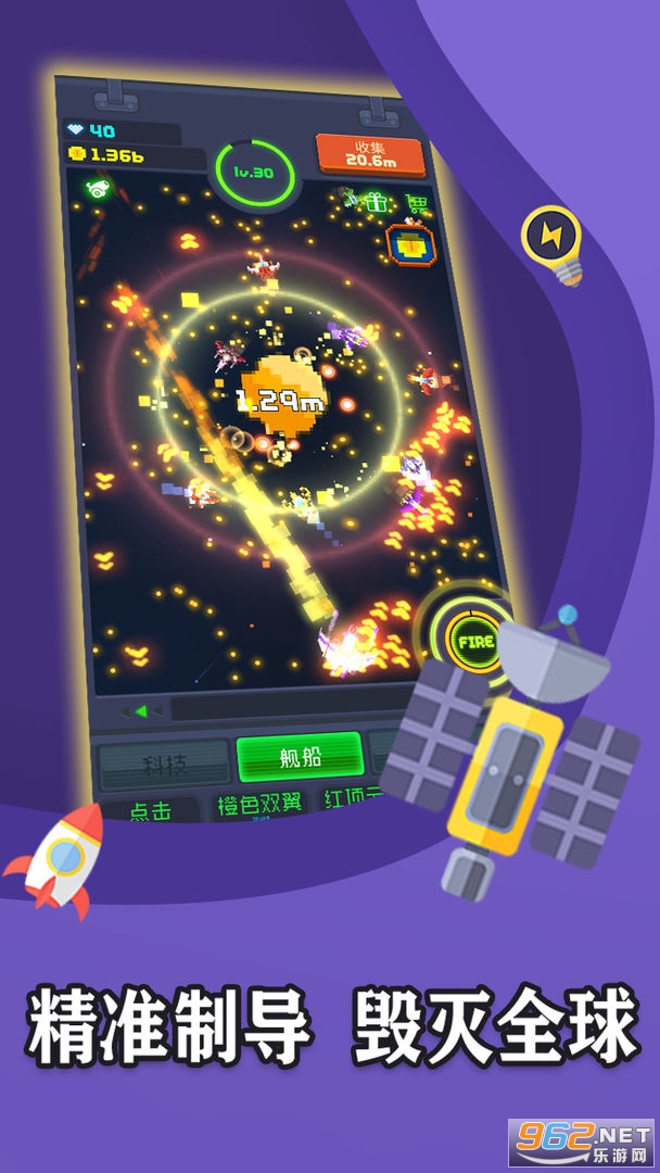 1、通过点击屏幕中的按钮来对不同的星球进行轰炸收集资源,只有强大的火力才能击碎它们的防御;