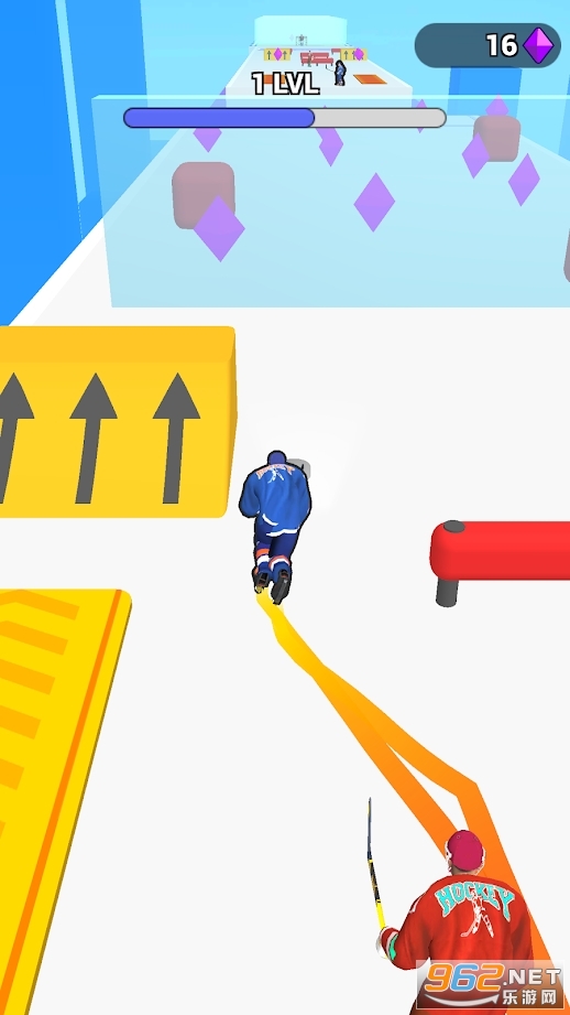 2、在前进的途中可不要忘记收集钻石,这些都是可以用来购买装备,滑冰进球轻轻松松的。
