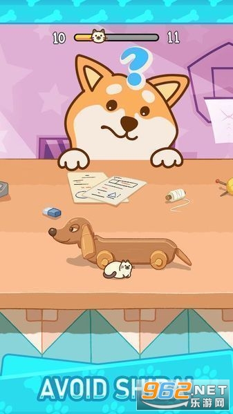 玩家需要在柴犬观察桌面的时候,点住屏幕让猫猫躲在柴犬的视觉盲区。