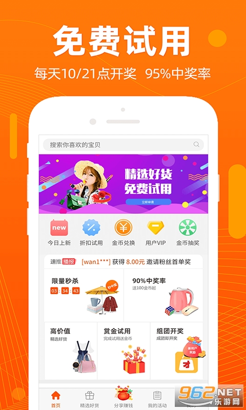 平均每天10万多件大量淘宝爆款,覆盖大量畅销品牌,衣食住行一应俱全。早上10点,晚上9点准点开奖,中奖率极高。