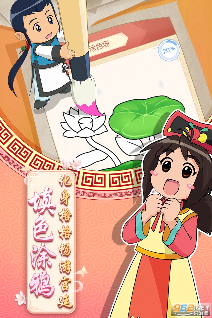 化身一个特别的格格,行走穿梭于宫廷各处场所。手持画笔,为诸多事物填色涂鸦,还能解锁新朋友;再当神探,仔细寻觅物件,升级一品大官领奖励,宫廷因你变得绚丽多姿、热闹非凡!