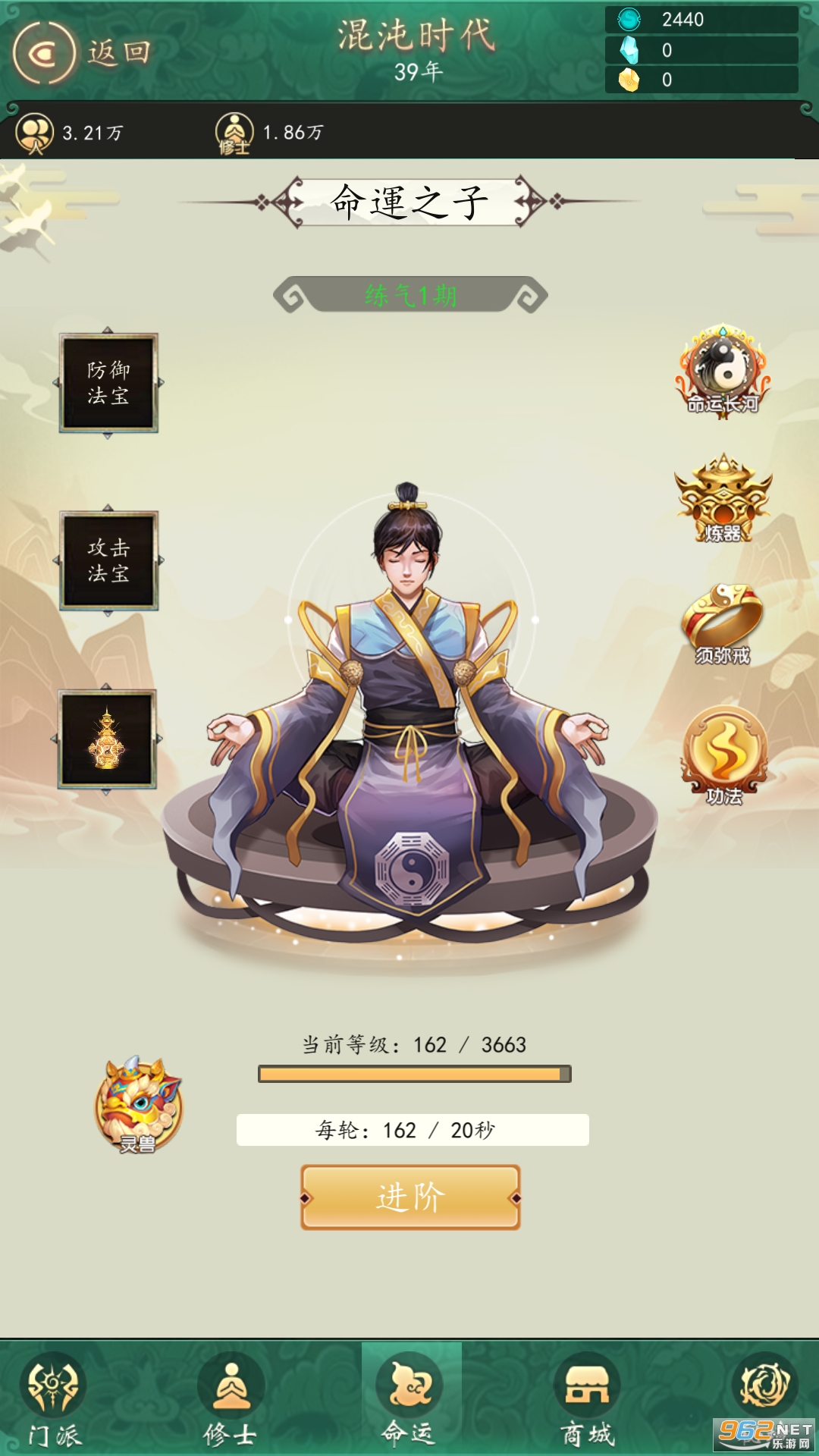 4.增加了命运之子修炼升级系统、穿戴装备、本命法宝、炼器、灵兽、功法穿戴。