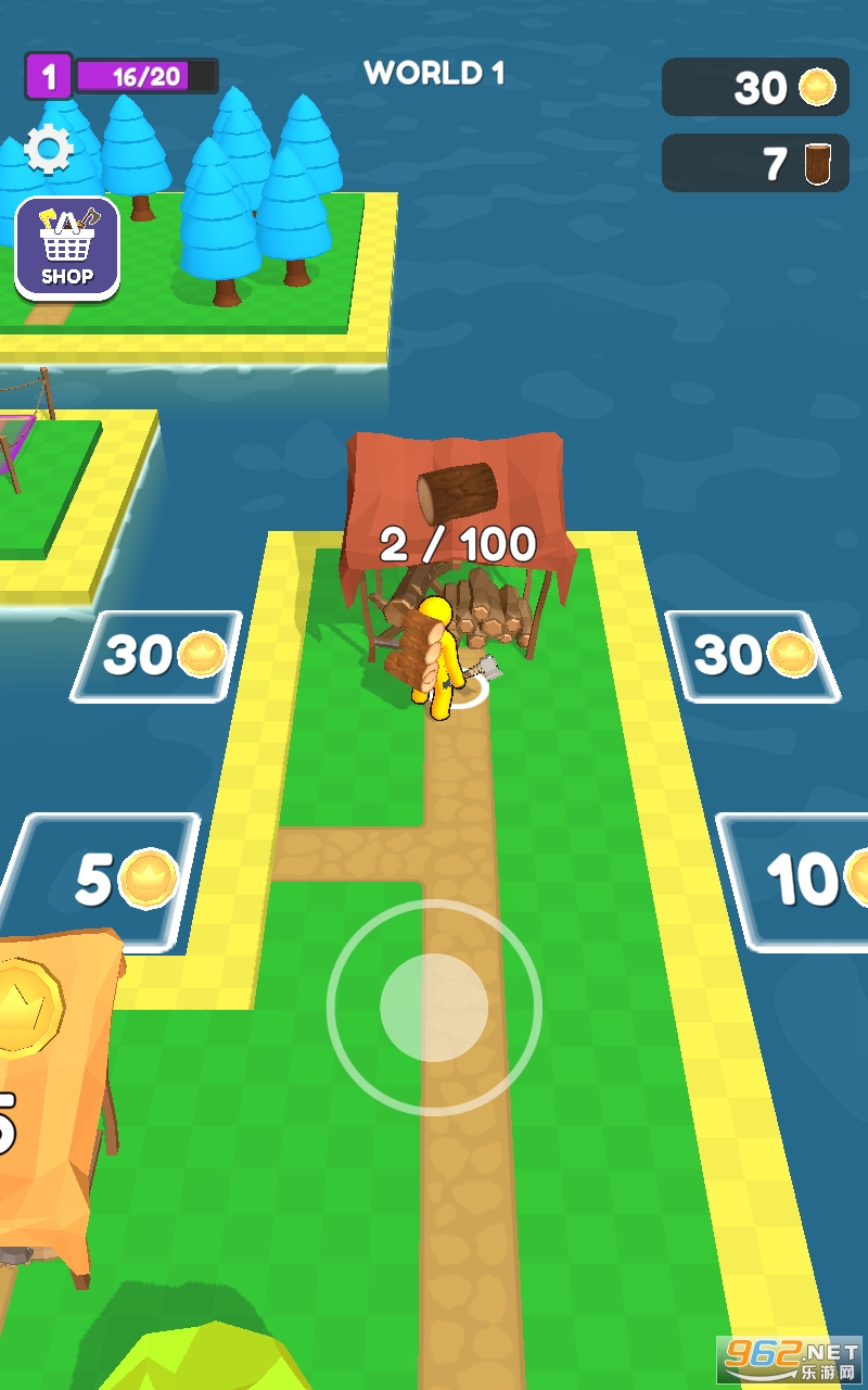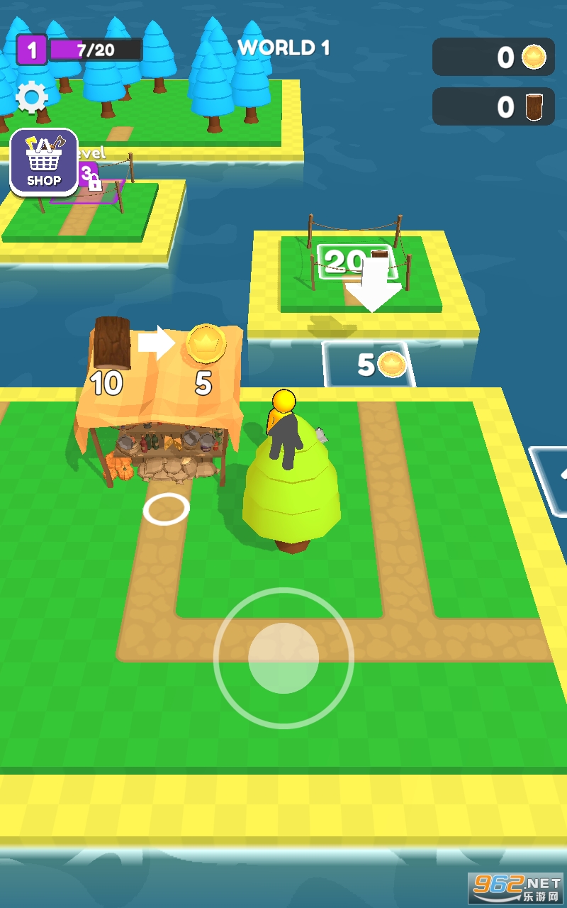 玩家可以通过伐木场收集的木材去换取金币,来拓展岛屿并建立起各种生活必须的建筑,并开启前往下一个岛屿的港口。