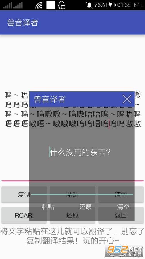 趣味的兽语翻译软件,朋友们可以利用软件将一段文字翻译成兽语,进行加密交流,让其他人摸不着头脑,可以使用软件进行翻译,看看对方说的是什么,喜欢的朋友可以下载试试。
