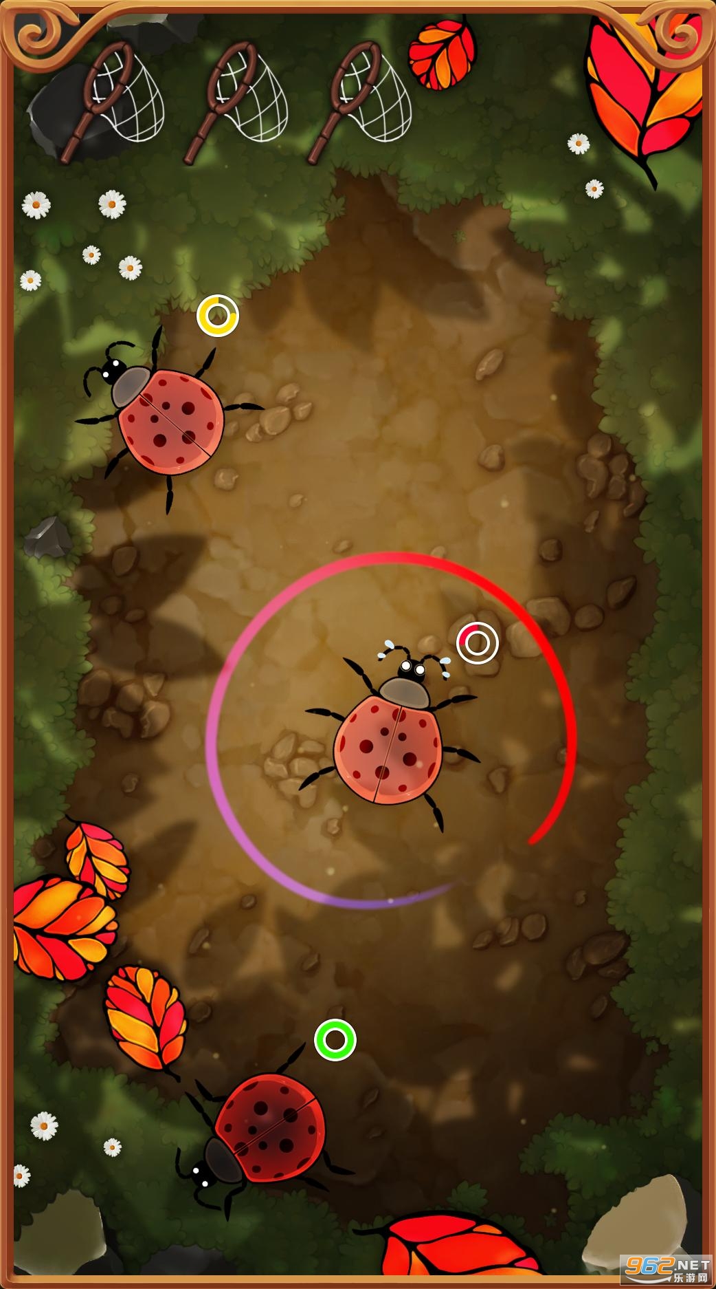 用你的网由捕捉虫子画圆身边与你的手指。随着您更熟练地捕捉错误,您会发现具有强大功能的新令人兴奋的生物可以用来中断捕获尝试。您将必须建立组合以更快地捕获小生物,方法是将它们绕圈许多次,然后再撞入您的网中。
