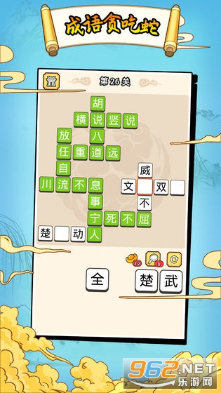 在选择正确成语的同时按顺序吃掉这个成语。