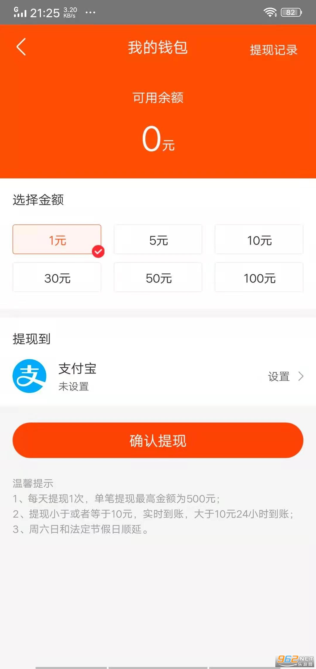 滴答星球收入满1元可申请提现,支持支付宝,每天可申请一次,单笔最高500元,到账迅速!
