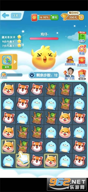 一起来捉宠是一款休闲的消除闯关游戏赚钱软件,0.3元就能提现秒到账。一起来捉宠app是一款超越传统、新潮流的休闲类三消游戏。游戏以换位三连消除为基础玩法,加入了各形各色的可爱“萌宠”形象,创新的闯关捉宠玩法。