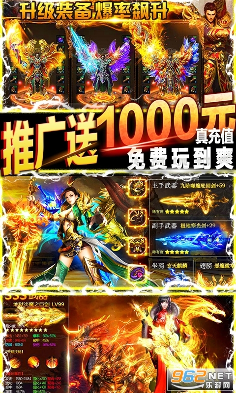 羽翼、战宠、神兵、骑宠多种外观,自由幻化!