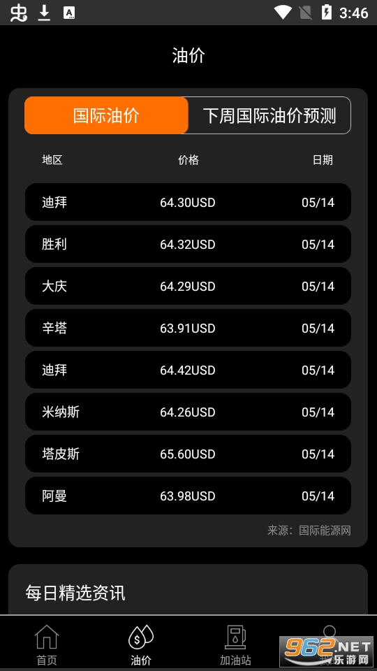 3、实时预测当前油价走势(根据国际原油价格数据),涨跌明细和查看各地实时油价行情,作为服务型的信息平台,必将为您带来及时、准确、全面的行业信息。
