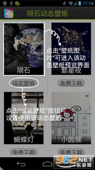 菜单键(或长按屏幕)->壁纸->动态壁纸->选择守护地球->设置壁纸(或在软件界面点击设置壁纸按钮参考设置向导操作即可)。