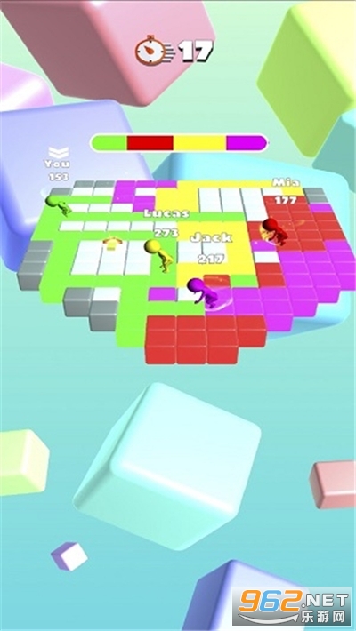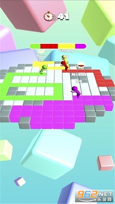 趣味的闯关游戏,有着一个多层六边形的平台,平台上的地板是会随着时间一点点消失,玩家将和其他小伙伴在上面竞技,掉下去没事,只要不掉到最下面即可,喜欢的朋友可以下载试试。