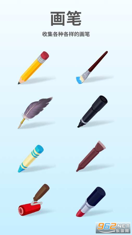 20种以上不同颜色与种类的画笔与小球等你收集。
