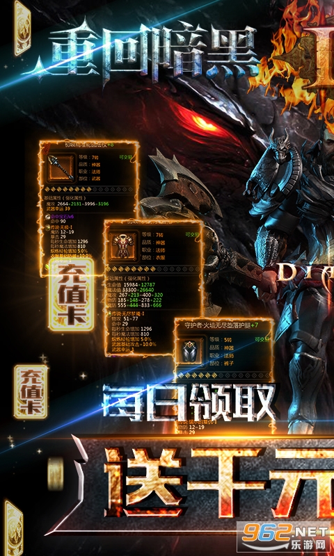 《热血暗黑天天送百抽》让各位玩家们在这款热血暗黑手游中可以享受千元充值的福利,并且每天都有免费百抽,让大家一起来这款热血暗黑天天送百抽手游中可以享受到海量的福利,给大家带来精彩趣味的游戏暗黑战斗手游!