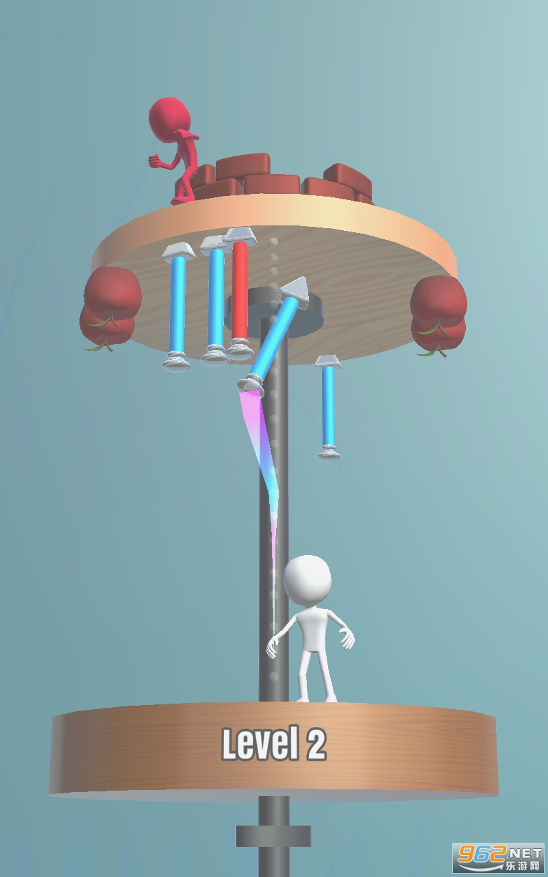 长矛命中游戏是一款充满着趣味性的休闲闯关类游戏。当我们来到游戏中的时候,便是会扮演一个小红人,来到一个塔的顶端,下面会有不断的小人来戳我们,但是我们的矛更大,直接给他们戳下去,超有趣的休闲必备游戏