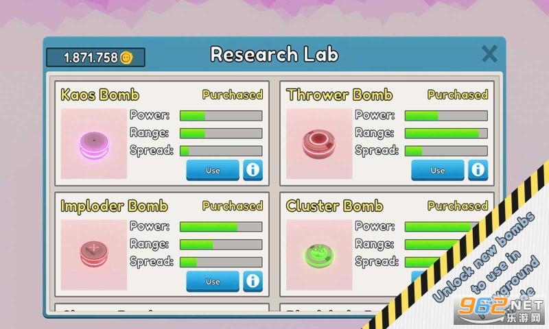 每一个关卡都有不同的建筑,你需要使用限定数量的炸弹将它们爆破,得到的分数越高金币获取的越多。