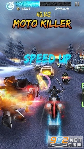 和童年回忆不同的是在这款游戏中玩家需要在道路上拾取各种各样的琦装备,同时还可以灵活的使用氮气来躲避敌人,游戏中连续的工具能够让你蝴蝶更多的分数和进步,跑不过的全部打倒,那么你就是第一名了,推荐给喜欢摩托驾驶游戏的玩家。