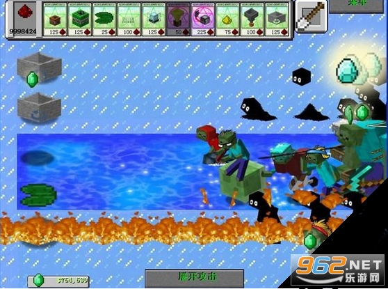 1、像素版的沙盒场地上打败僵尸吧,快来放置合适的动物反抗僵尸首领;