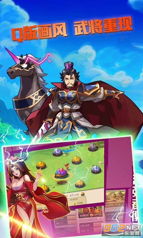 另类卡通画风的三国卡牌手游,游戏创新的拥有了更多的骑战的玩法,众多的武将随你挑选,获得更多的元素,颠覆性的剧情推动,让你在游戏中体验到国战、军团战、个人战等惊喜操作,时刻注意提升将领的能力,在对战起点上不能输,策略很重要,需要你合理运用你的精兵悍将。