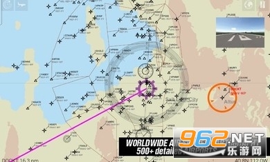 WORLDWIDE导航和飞行计划与500+准确的机场,日夜循环,REALTIME metaR天气条件,空域地图学与8000航点。