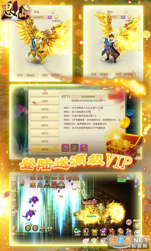 满VIP,登录就送V15。《思仙-定制版》一天百级登录送满V的变态回合制游戏震撼来袭!