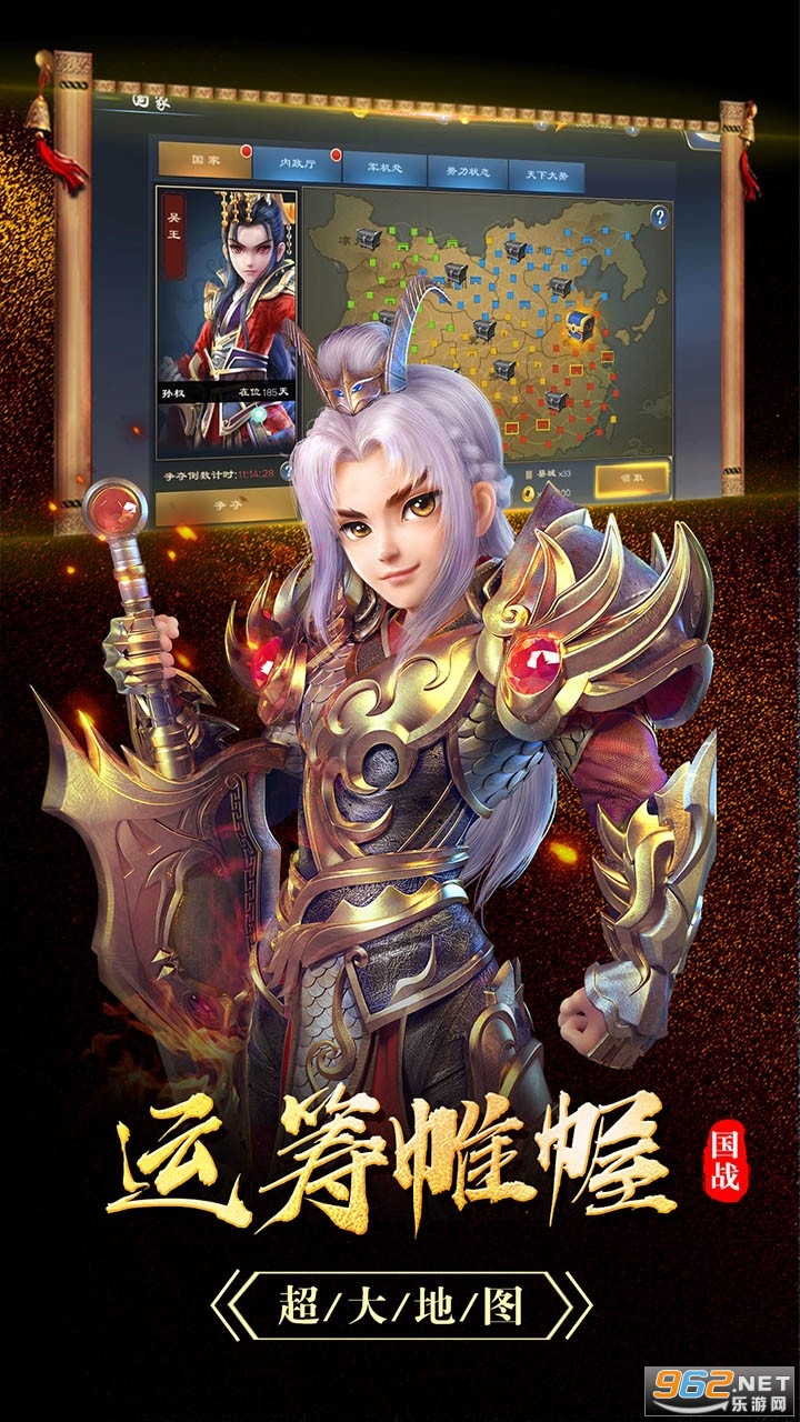 天下大势,合久必分,分久必合。梦回三国之时,你是否想过自己成就一番宏图霸业?这一次为你还原乱世之景,这里有独特的国战让你施展谋略,更有百余知名武将随你征战沙场。武将缘分、武将突破、兵种培养等多维度培养方式让你手下的武将快速成长!收集材料晋升官职,更有缘分技能上阵助您实力超群;多重策略争霸玩法,多种社交情缘玩法,与敌国对手的一较高下,开拓您专属的霸主之路!