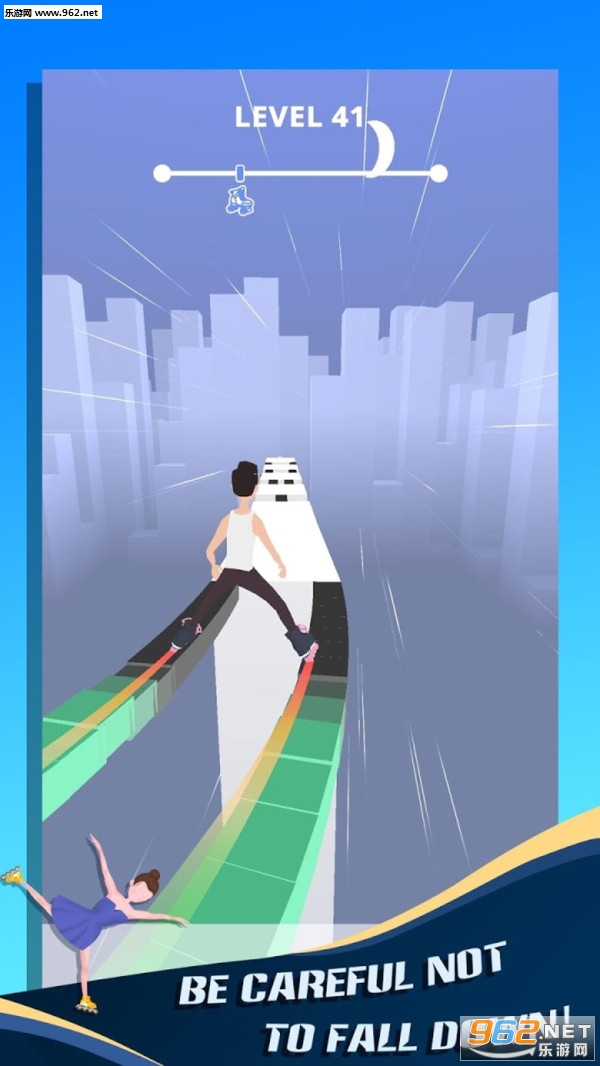 全民劈叉游戏安卓版中你将成为一个轮滑高手,而你要面对的就是非常恐怖的天空赛道,这里两边都没有围栏,而你要上边滑行,一旦出现任何失误都会让你坠入深渊无法身还,而且在路途中会有很多的障碍物,他们会阻拦你的去路,甚至能让你瞬间脱离赛道之中。
