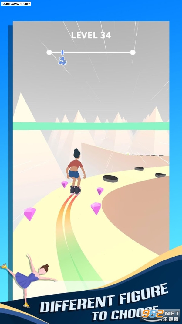 非常好玩有趣的一款轮滑类闯关休闲手游,游戏玩法非常的精彩刺激,游戏中玩家们需要控制主角在天空赛道上,不断向前滑行前进,躲避各种障碍和危险拾取大量的钻石,完成一个又一个的关卡挑战,享受绝佳的滑行闯关乐趣。