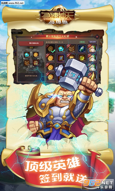 西方魔幻题材卡牌游戏,轻松搞笑的剧情。登录即送VIP8,、28888钻石、180000金币,每日登录游戏领钻石,累计可获得500000钻石,不氪金也能轻松体验。此外,签到还送顶级前排英雄-路西法,助你闯关升级无压力。游戏有超炫的战斗画面,各种华丽的技能。还有海量英雄,随你搭配,超简化的培养,轻松挂机!