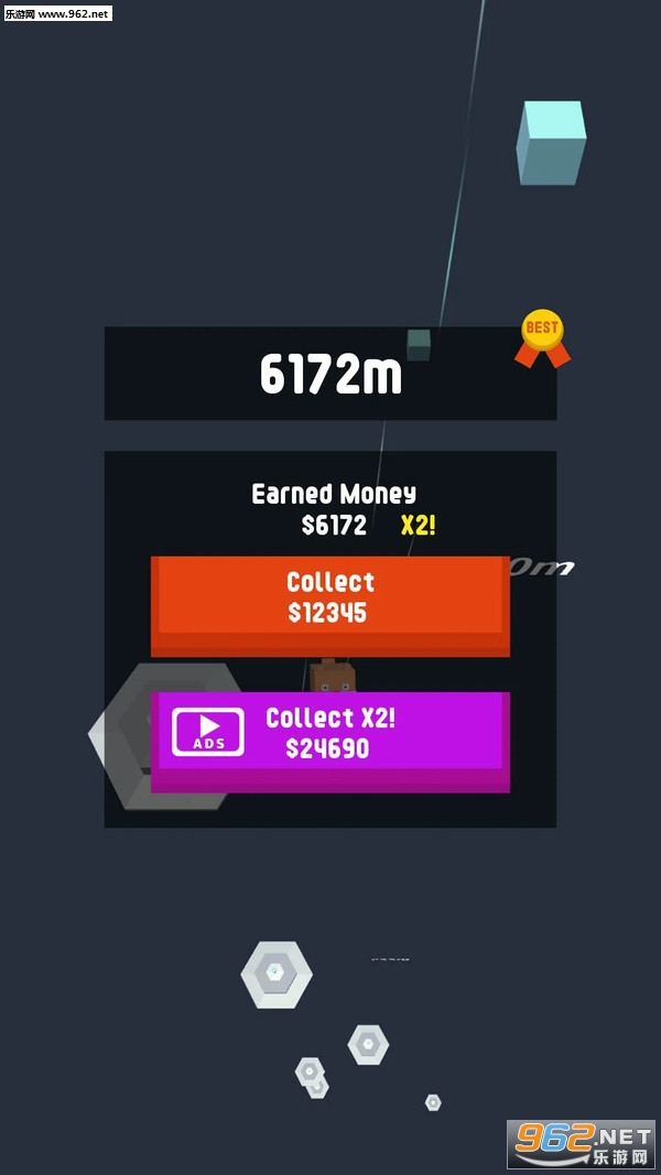 3、方块跳的越高就可以看到更好的风景从而获得更多的金币。