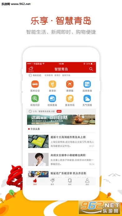 《智慧青岛ios版》这是一款由青岛报业打造的生活类新闻资讯服务客户端。打开“智慧青岛”软件,可以在线浏览社会热点、时政要闻、八卦娱乐、直播现场等资讯报道,还能享受天气预报、智慧公交、水电缴费、停车场查询、违章查询以及网上商城等便民服务。